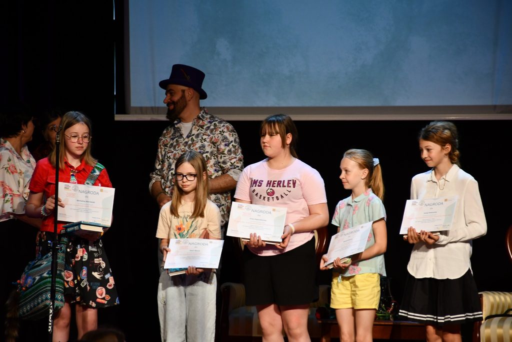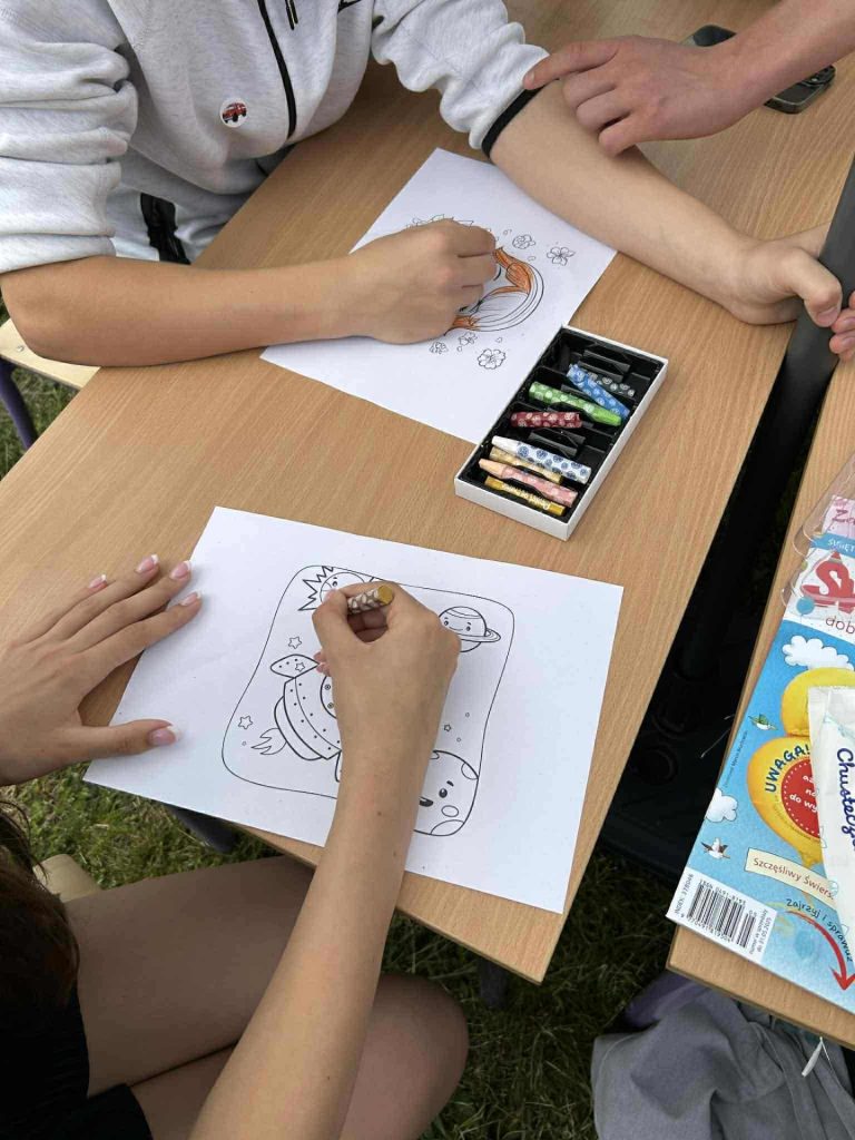 • Organizacja miejskiego konkursu plastycznego „Przygody Mai na podstawie książki M. Szczygielskiego „Czarownica piętro niżej”