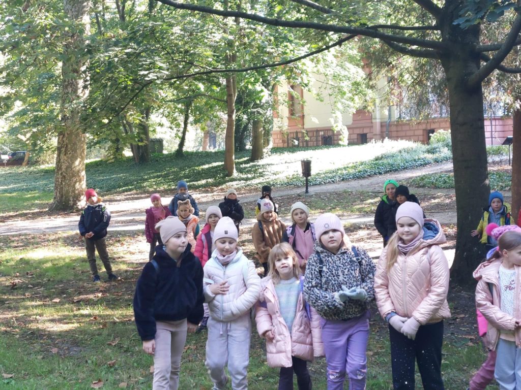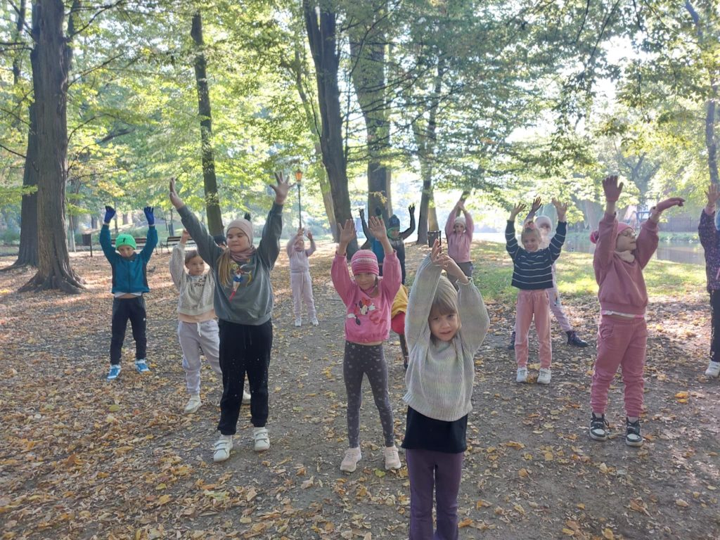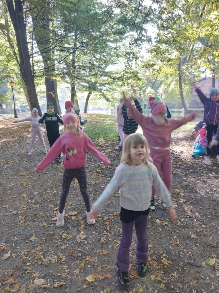 W piątek 3 października klasa 2d wybrała się do Parku Dittricha szukać oznak jesieni. Nad nami było błękitne niebo i ciepłe słońce. Pod nogami szeleściły żółte liście. Ćwiczyliśmy wśród drzew i liści. Bawiliśmy się na placu zabaw. Oddychaliśmy świeżym powietrzem.