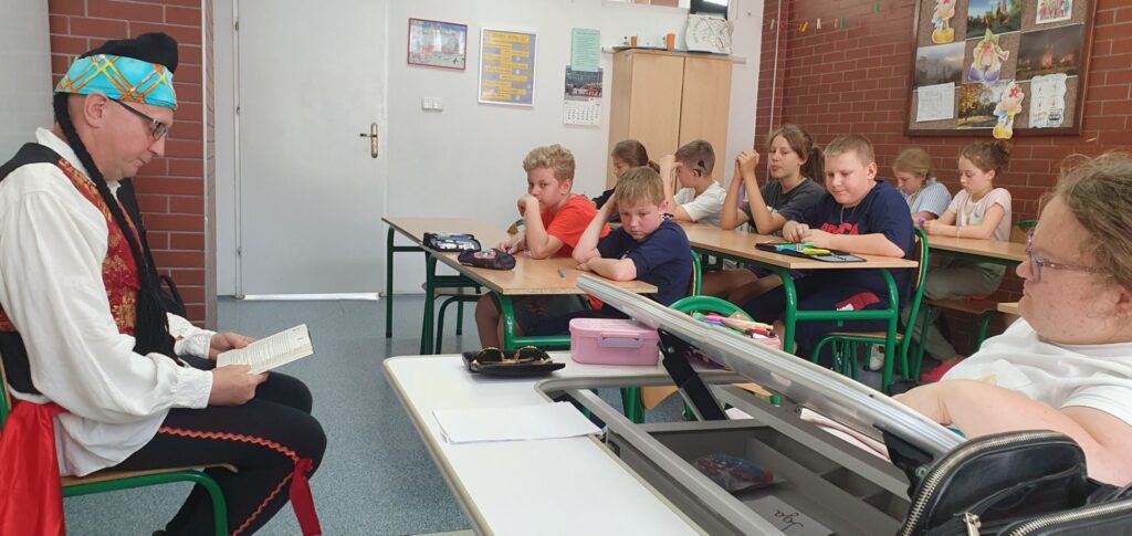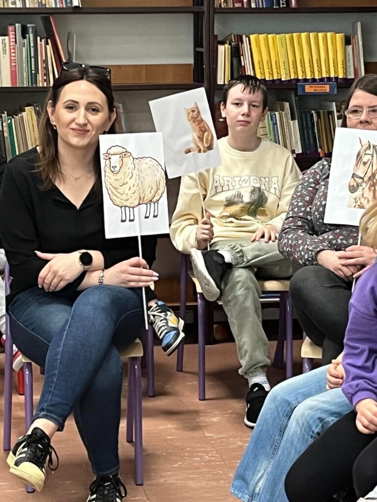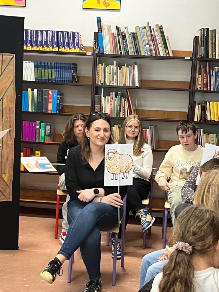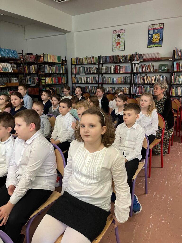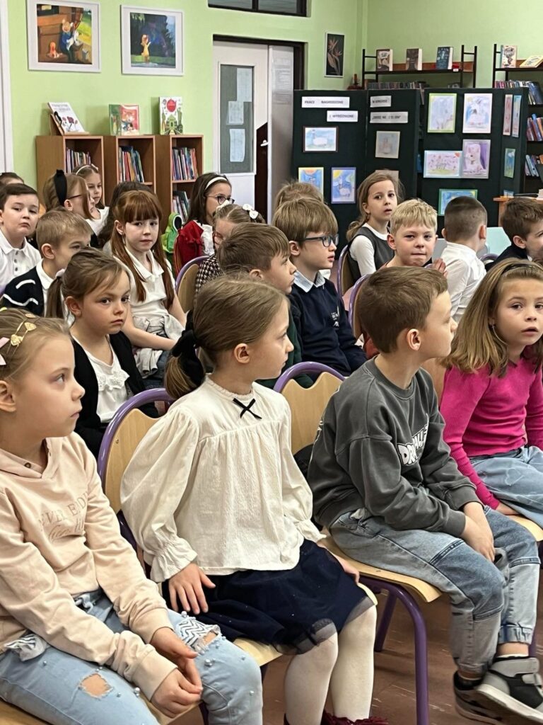 „Kim było zwierzę nie z tej ziemi” – projekt realizowany był w klasach pierwszych. W dniu 28.03.2025r. w bibliotece odbyło się uroczyste podsumowanie akcji głośnego czytania dzieciom Cała Polska Czyta Dzieciom. W inscenizacji książki „Zwierzę nie z tej ziemi” wzięli udział i czytali dzieciom z podziałem na role – wicedyrektor szkoły p. Dominika Noszczak-Bielak, rodzice dzieci z klas pierwszych, nauczyciele, ks.Mateusz Adamski, oraz młodzież z Akademii Aktywnego Czytelnika. Przez ostatnie dwa miesiące dzieci z klas pierwszych poznawały bohaterów książki, zastanawiały się nad tym kim może być zwierzę, które przybyło do gospodarstwa, a trzymane było w szopie. W styczniu i lutym odbyły się po dwa zajęcia w każdej klasie z udziałem czytajacych rodziców: 1. – „Lubimy czytać i słuchać” 2. – „Kim było zwierzę nie z tej ziemi” oraz konkurs plastyczny pt. „Zwierzę nie z tej ziemi”. Nagrody wręczył dzieciom dyrektor szkoły p. Norbert Kościelniak. Nagrodzeni uczniowie to: Małgorzata Kaczmarek 1a, Ignacy Wojtczak 1b, Martyna Rutkowska 1c, Maria Zajdel 1d, Natalia Dąbrowska 1e. Wyróznieni: Solomiia Tymokhina kl. 1a, Julia Zygadło 1a, Lena Kakietek 1b, Nadiia Lytvinchuk 1b, Zuzanna Kopcińska 1c, Martyna Rutkowska 1c, Hanna Aronowska 1d, Łukasz Kowalczyk 1e, Yurii Soltys 1e. Podczas ostatniego podsumowującego spotkania „Amelia zwierzę nie z tej ziem”, dzieci poznały głównną bohaterkę książki Amelkę, która okazała się przyjazną Alpaką Amelią. Była ona niezwykła ponieważ umiała zaprzyjaźnić się z córką gospodarza Mariana Kapustki, dziewczynką inną niż wszyscy, samotną wyobcowaną. Dzieci zgodnie przyznały, że warto dać szansę każdemu bo każdy jest ważny mimo, że czasem wydaje się inny, może czasem dziwny.