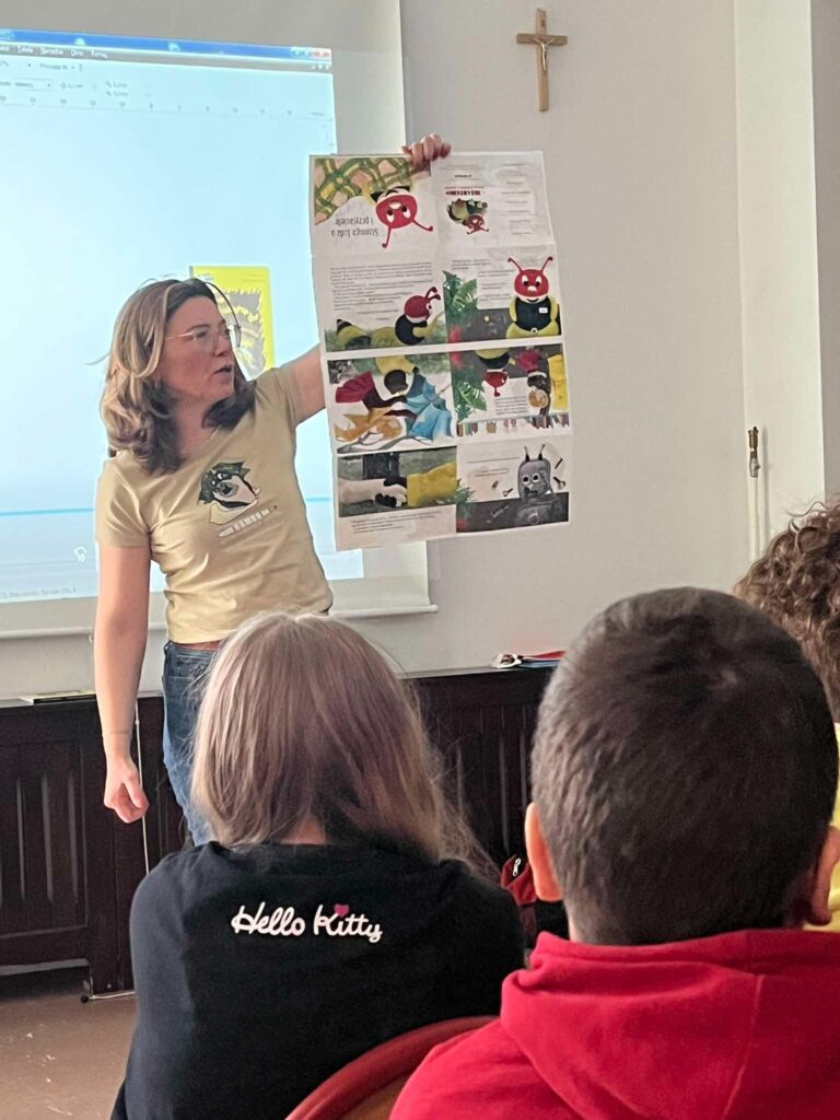 Z okazji kwietniowego Międzynarodowego Dnia Książki Dziecięcej odbyło się w bibliotece szkolnej spotkanie autorskie z p. Barbarą Szelągowską i ilustratorką p. Moniką Jędrychowską, autorkami książek m. in. „Siedem d(reszczowych dni”, „Ja Peru(ś), czyli pamiętnik fajowego psa”, „Stonoga Jadzia i przyjaciele”. Zajęcia z cyklu „Cała Polska Czyta Dzieciom”. Uczniowei z klas IV 4a i 4d brały udział w „Słownych potyczkach lirterackich”. Celem spotkania było nie tylko zachęcanie do czytania, ale także ukazanie złożoności i piękna naszego języka, poprzez odpowiedni dobór utworów (wierszy, zagadek czy krótkich opowiadań. Dzieci obejrzały film o tym jak powstawały ilustracjie do książek autorki. Przedstawiał on różne techniki tworzenia ilustracji, a także prezentował możliwości programów graficznych przy tworzeniu rysunków. Spotkanie było okazją do ciekawych rozmów o twórcach książki, o tym skąd czerpią inspiracje do tworzenia. Wydarzenie mogło odbyć się dzięki Radzie Rodziców, która stale wspiera działania na rzecz rozwoju czytelnictwa naszych dzieci. Serdecznie w ich imieniu dziękujemy.