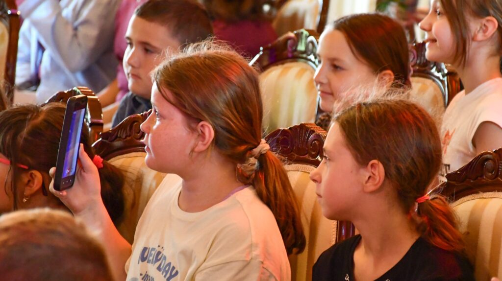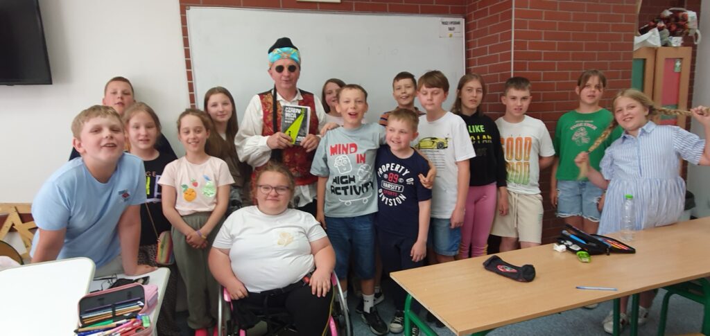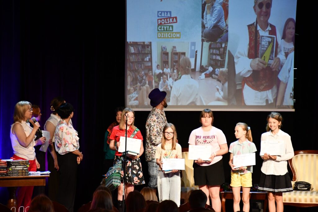 W dniu 6.06.2025r.dzieci z żyrardowskich szkół podstawowych spotkały się w Sali Balowej Resursy z pisarzem Marcinem Szczygielskim w rozmowie z p. Dorotą Koman literaturoznawczynią, redaktorką, Ambasadorką Fundacji CAŁA POLSKA CZYTA DZIECIOM.