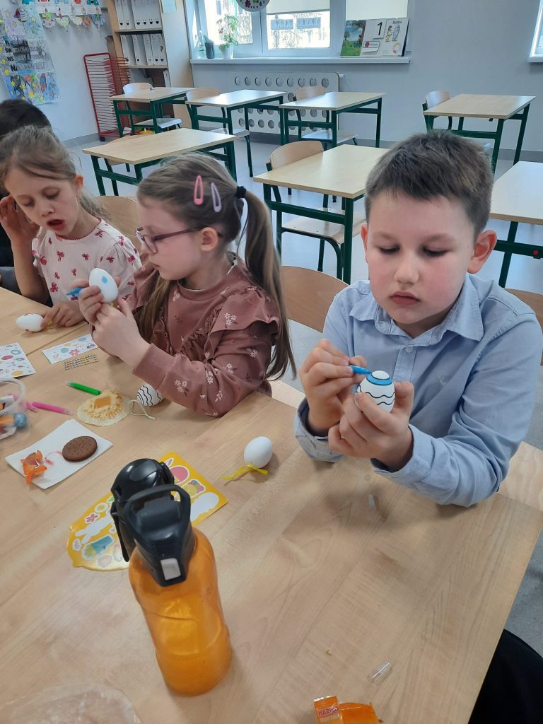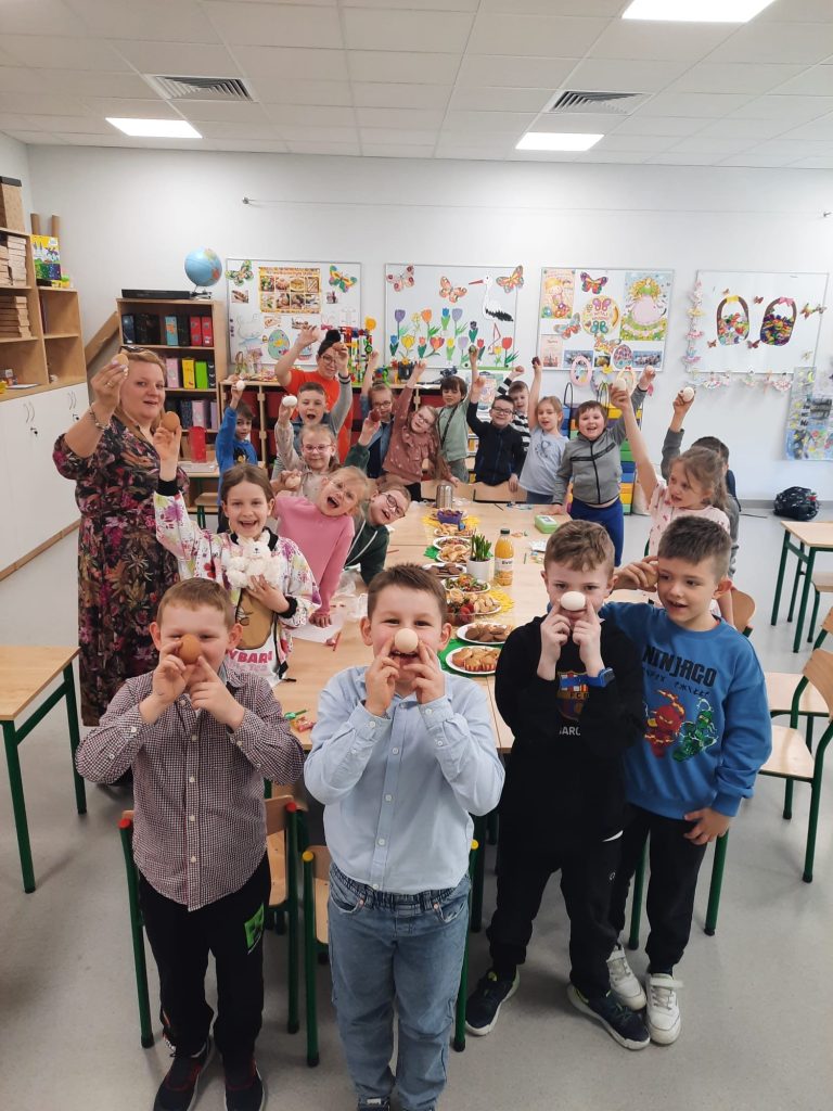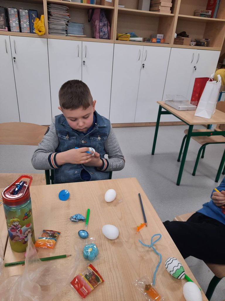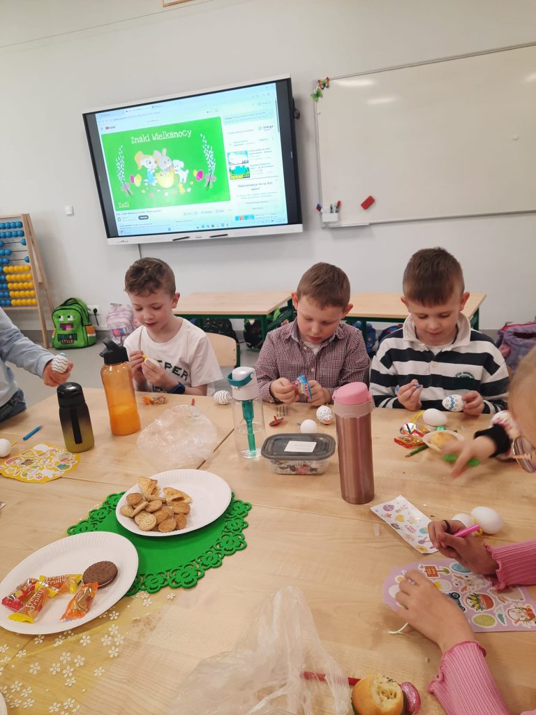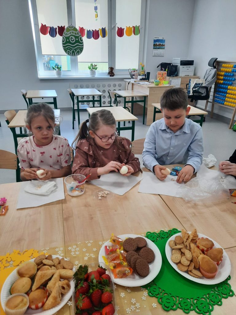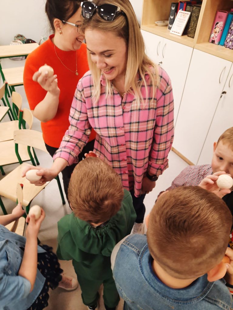 Następnie przygotowaliśmy wspólny stół, żeby staropolską tradycją stuknąć się jajkiem i złożyć sobie życzenia. Na koniec ozdabialiśmy pisanki.