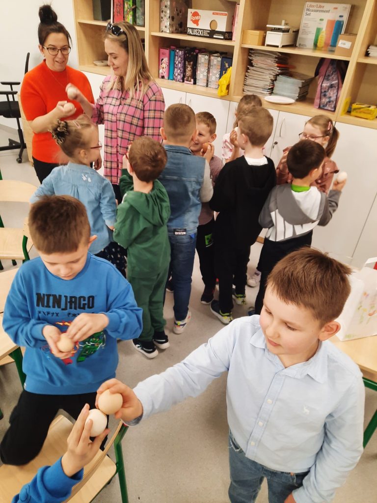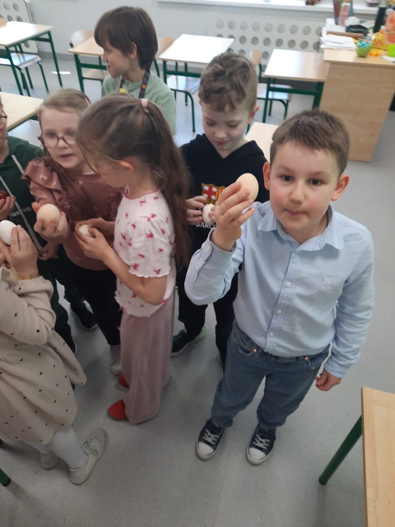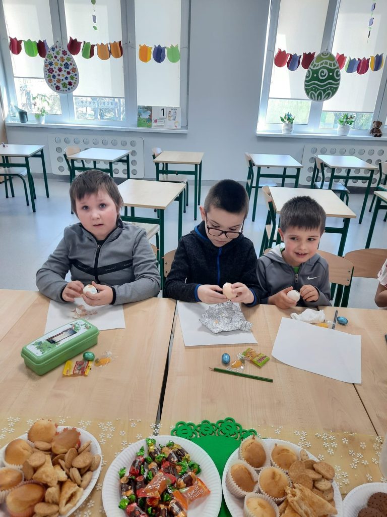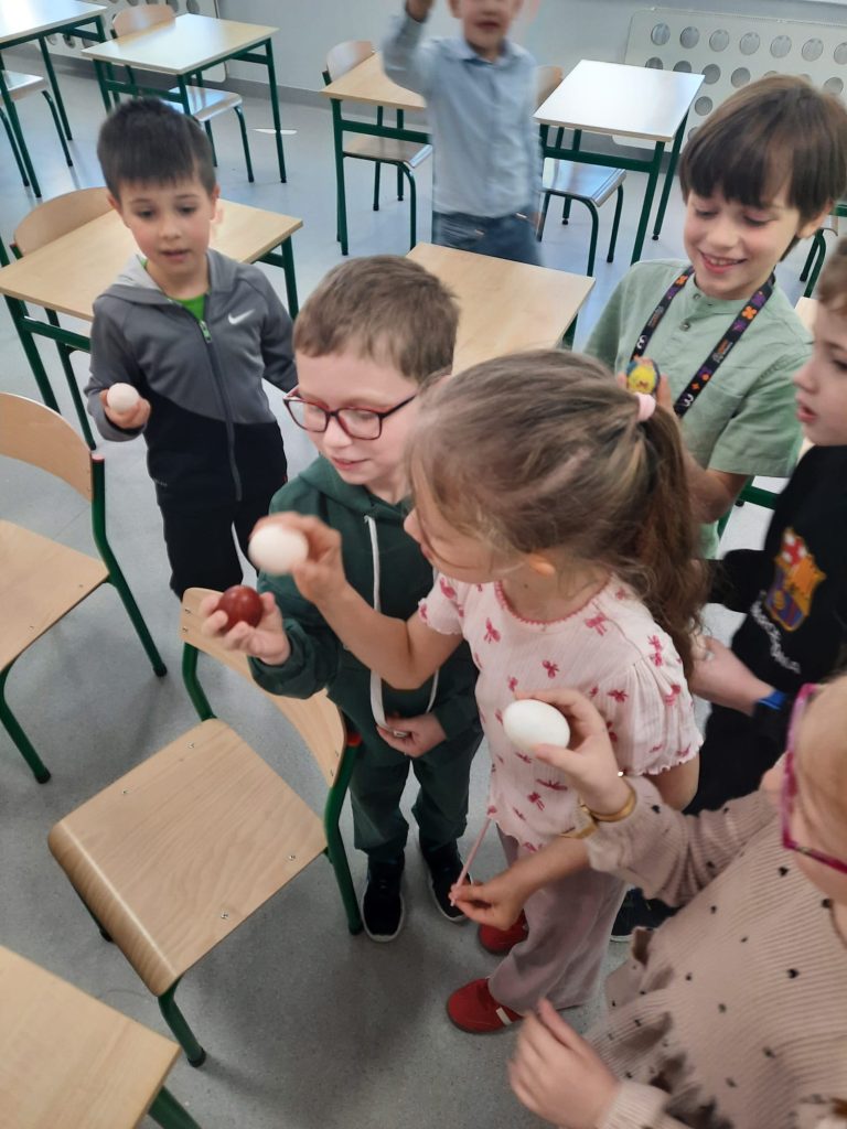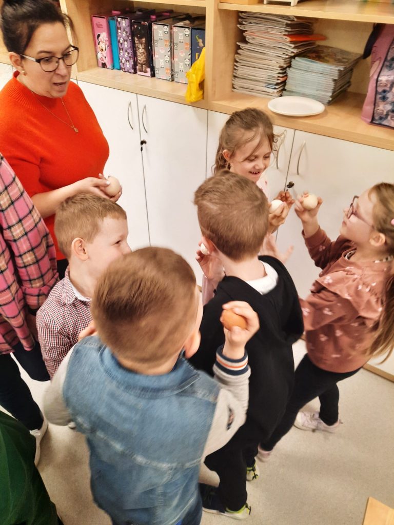 Następnie przygotowaliśmy wspólny stół, żeby staropolską tradycją stuknąć się jajkiem i złożyć sobie życzenia. Na koniec ozdabialiśmy pisanki.
