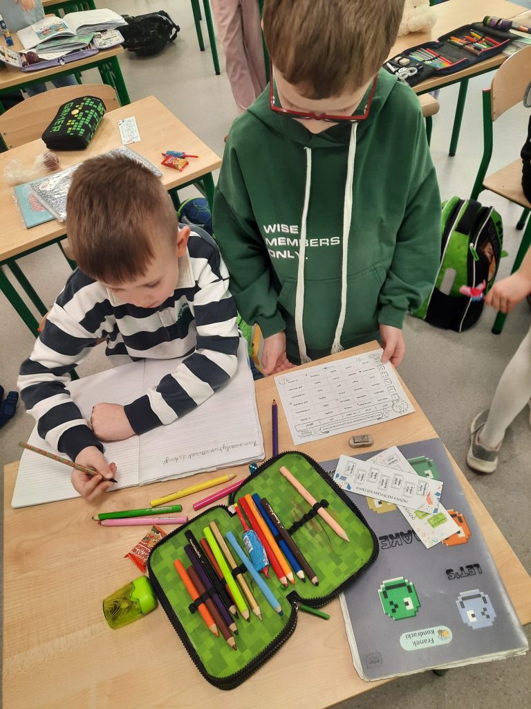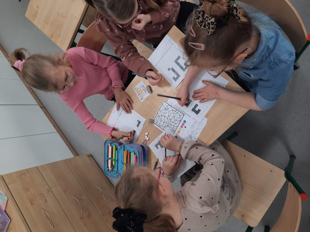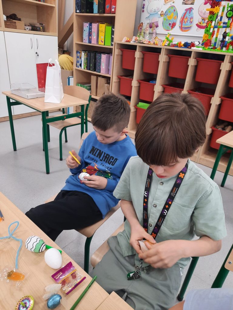 Były wielkanocne zajęcia metodą stacji zadaniowych. Każdy pracował w swoim tempie, mógł pracować sam lub w parach, czy grupach.
